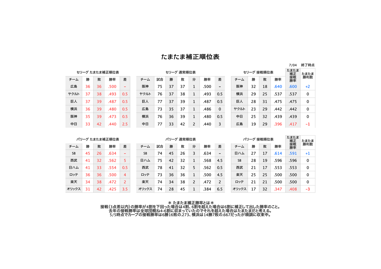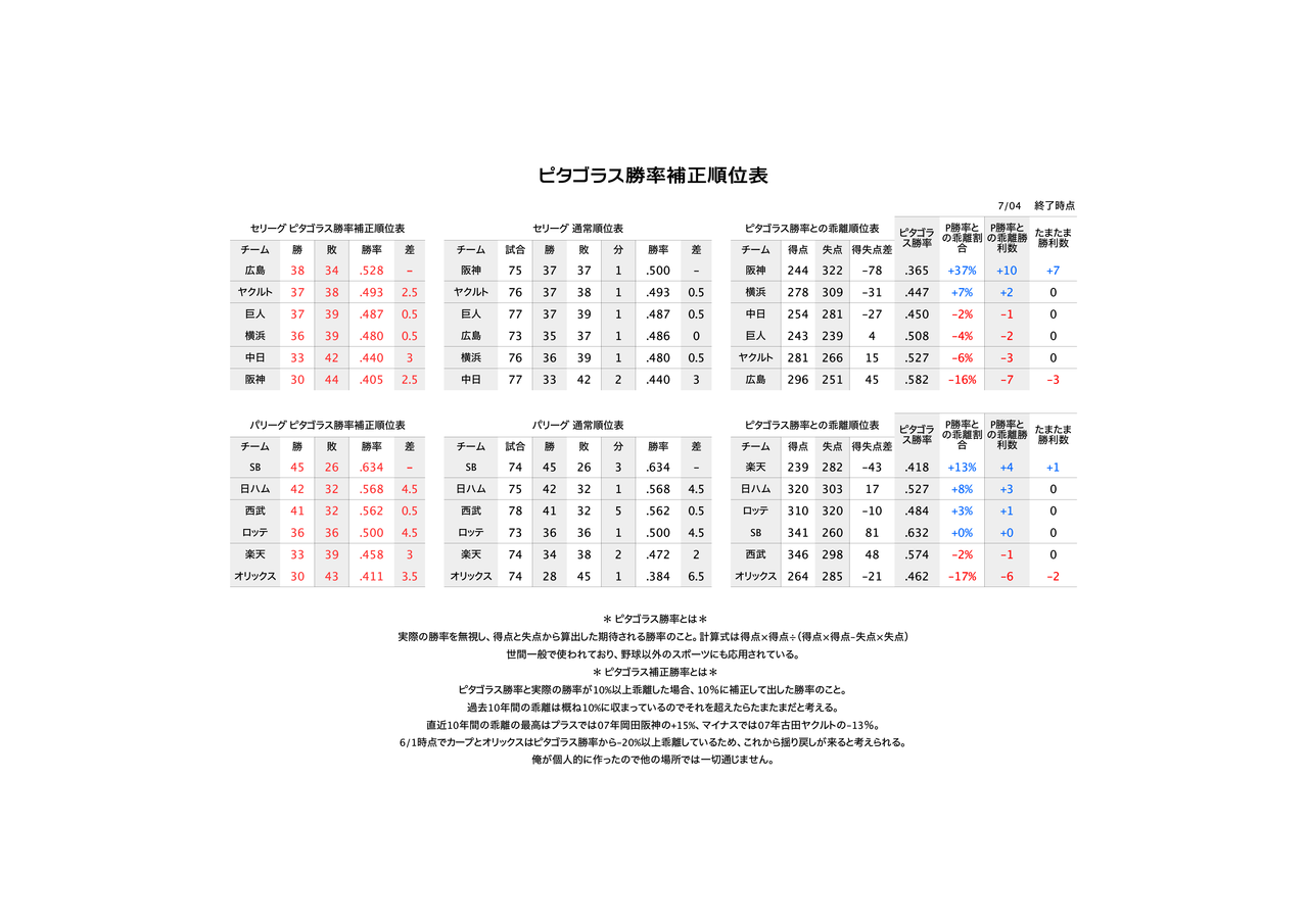 逆にカープの19勝29敗 勝率.396は少し負けすぎ
