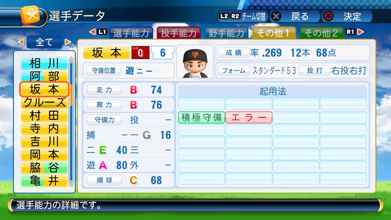坂本 599.0イニング 併殺-0.5 守備範囲 2.8 失策 1.2 UZR 3.5 UZR/1200 7.0