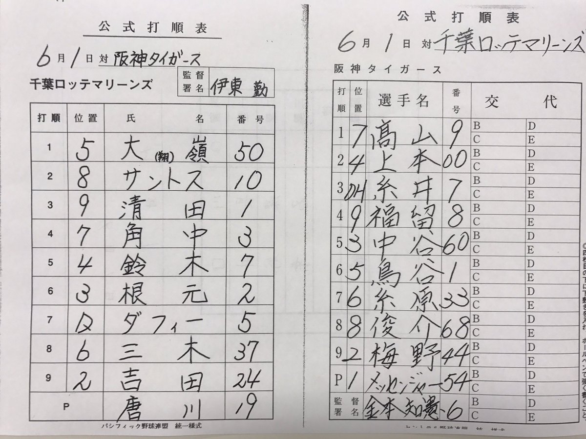 6 (三) 鳥谷 0 0 0 0 .291 1