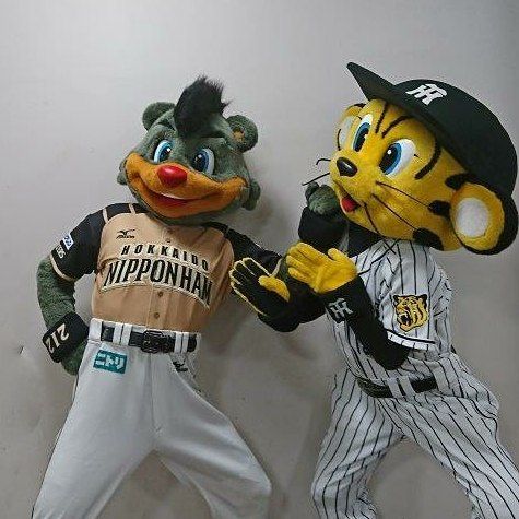 hanshintigers_official今日は、日ハムのマスコットB・Bが甲子園に駆けつけてくれました!トラッキーと仲良く記念撮影??…と思いきや、交流戦裏バトル?が勃発!?