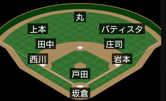 [巨]畠●→中川→田原→池田→マシソン→篠原
