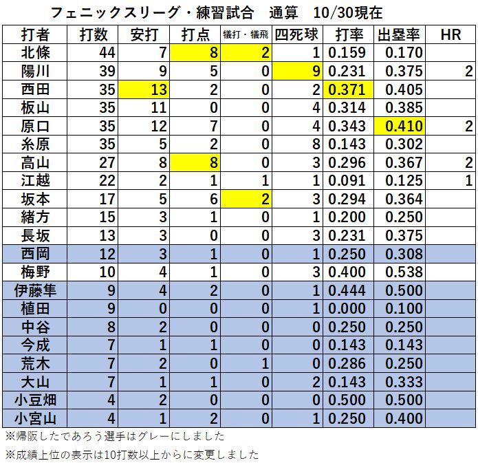 野手では陽川選手がソロHR、坂本選手が2安打などの活躍をしています。