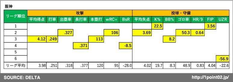なんか色々おかしいけどセイバー載せるなら攻撃は阪神>巨人横浜にすべきやし阪神の守備は盛っても2.0がいいとこやろ