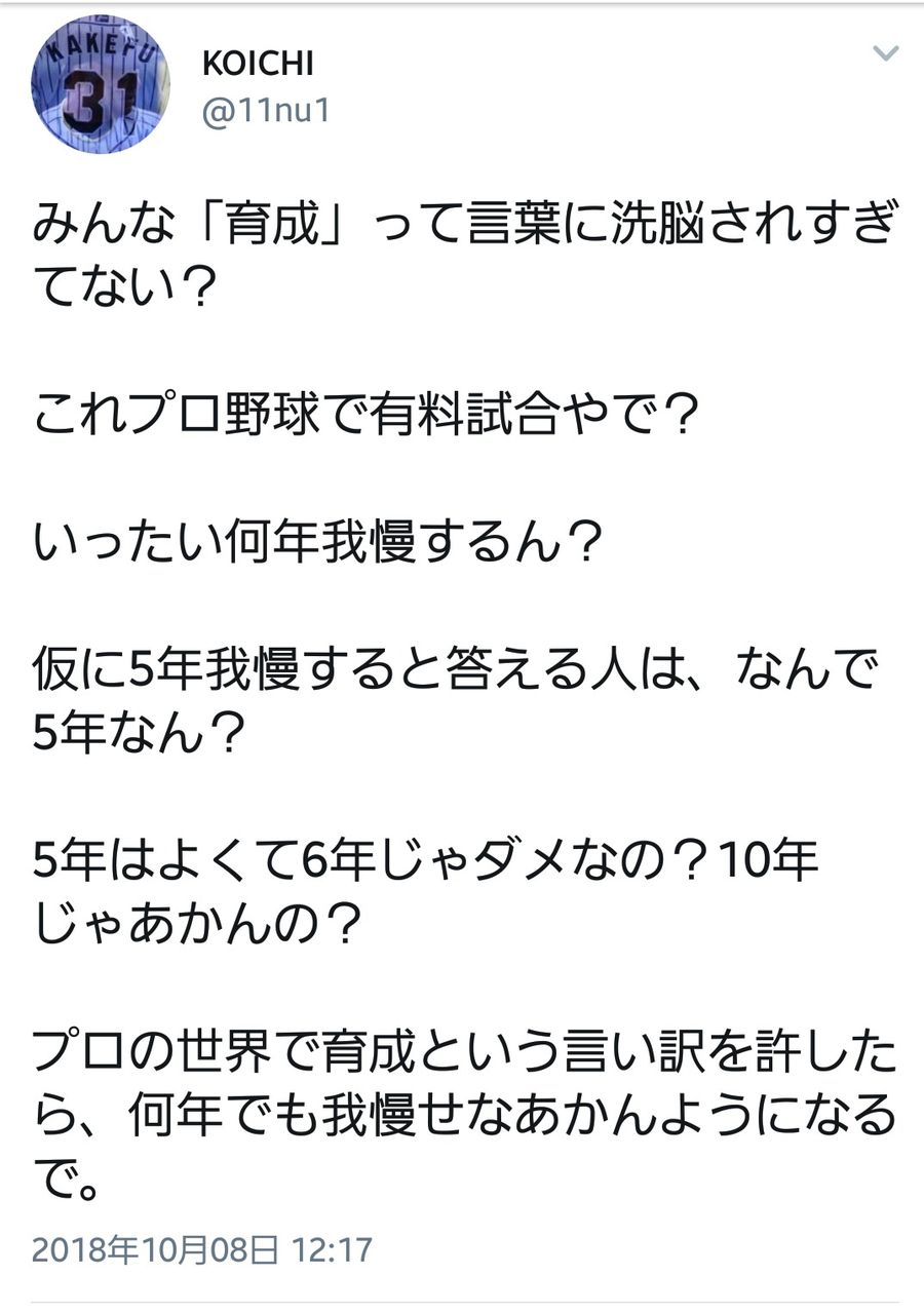 育成は否定せんけど、せなら育成しながら結果も出せよいう話やね