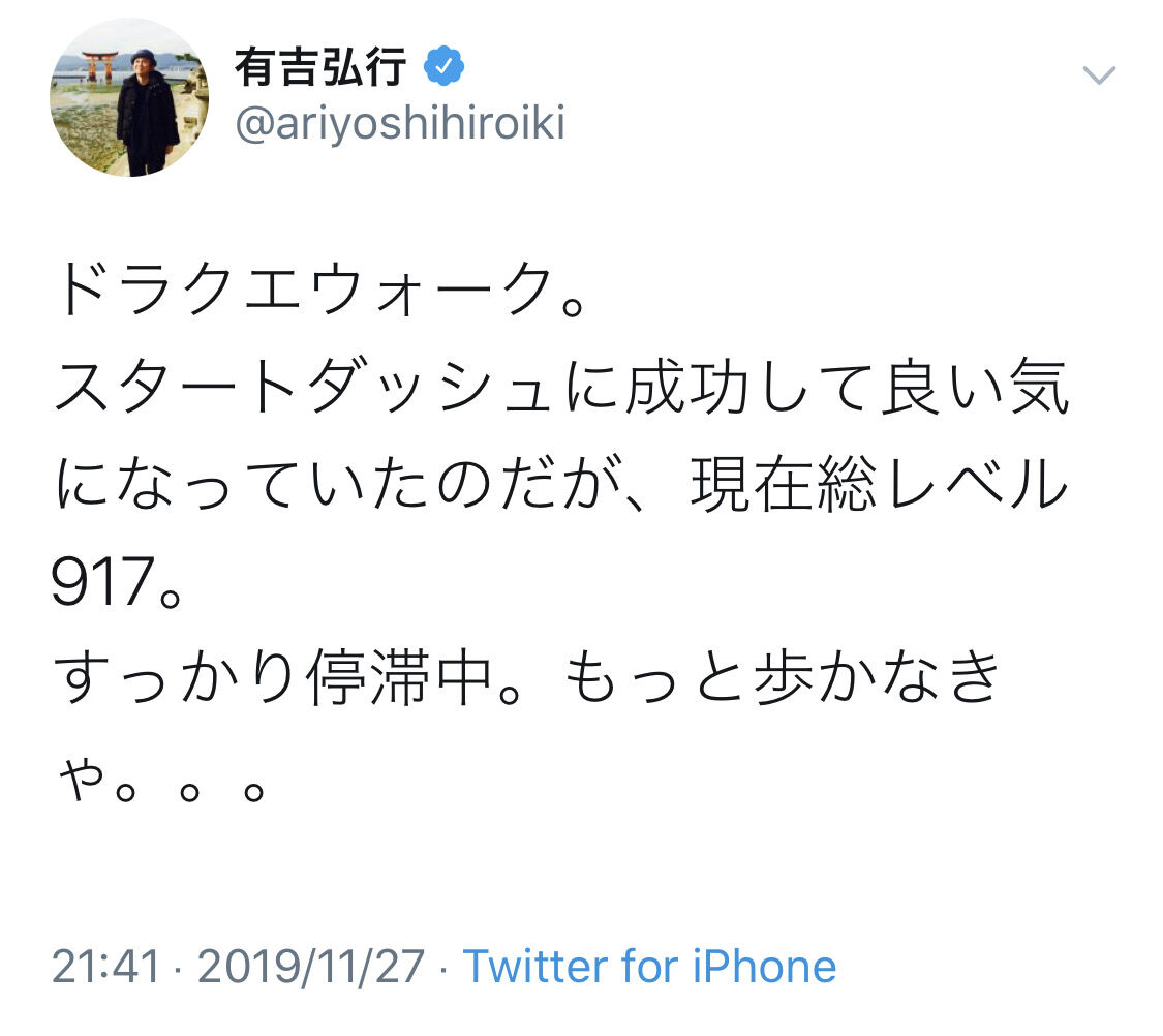 週刊紙にプライベートでドラクエウォークのために歩いてるのをすっぱぬかれたんだよなあ