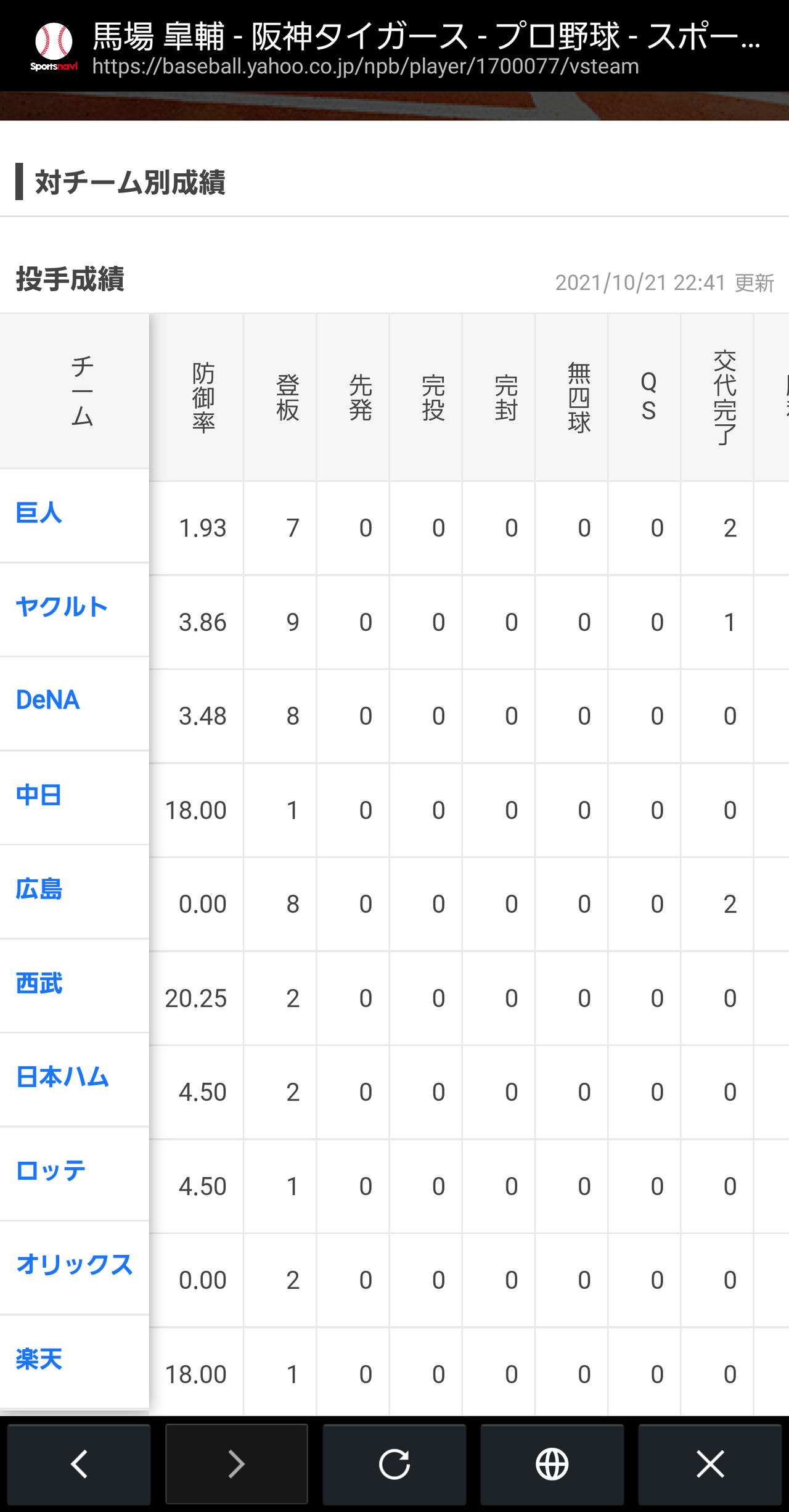 これで馬場9試合連続四球なしや