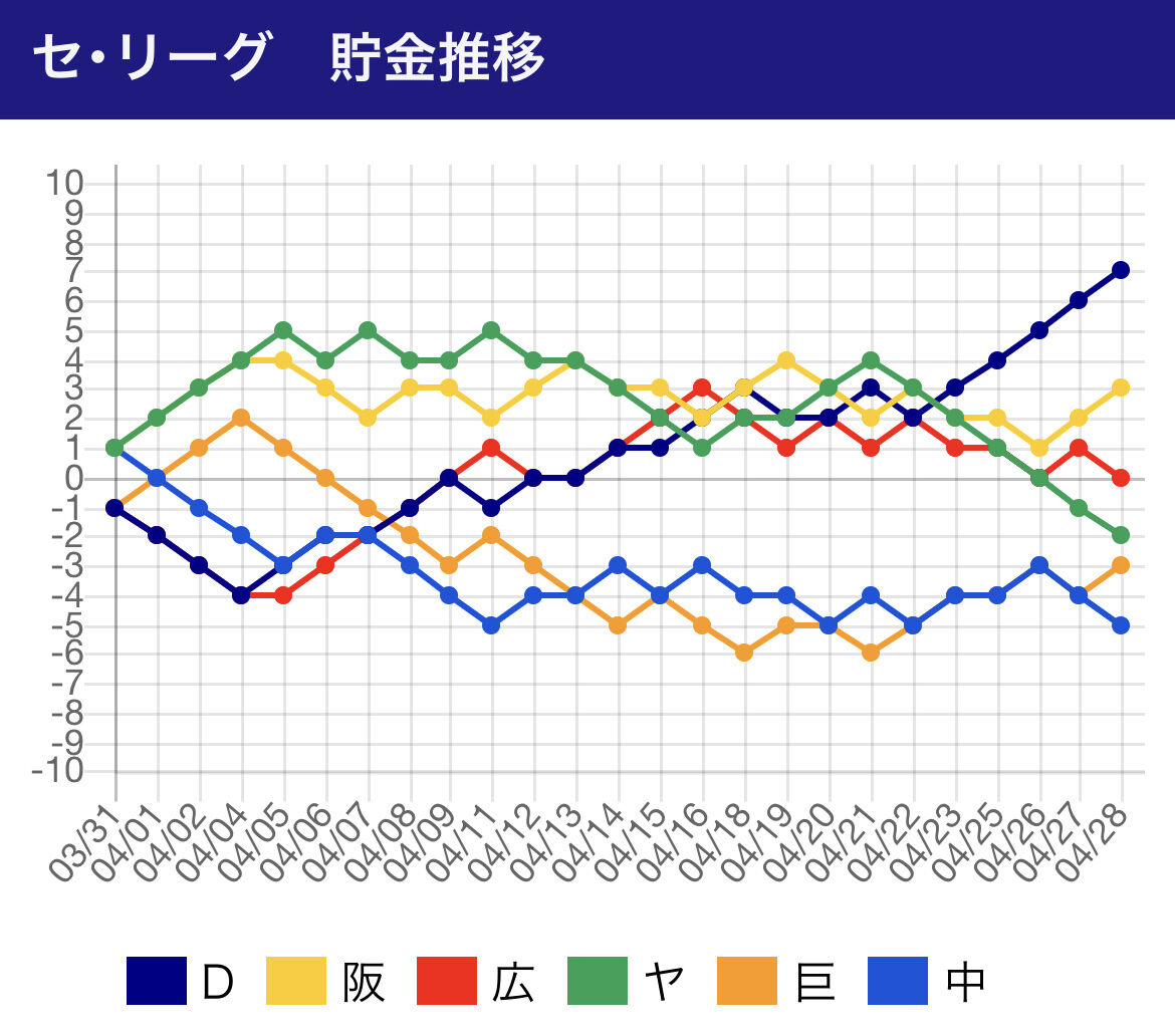 横浜 現在+08 最多貯金*8(04/29) 最多借金*4(04/04)