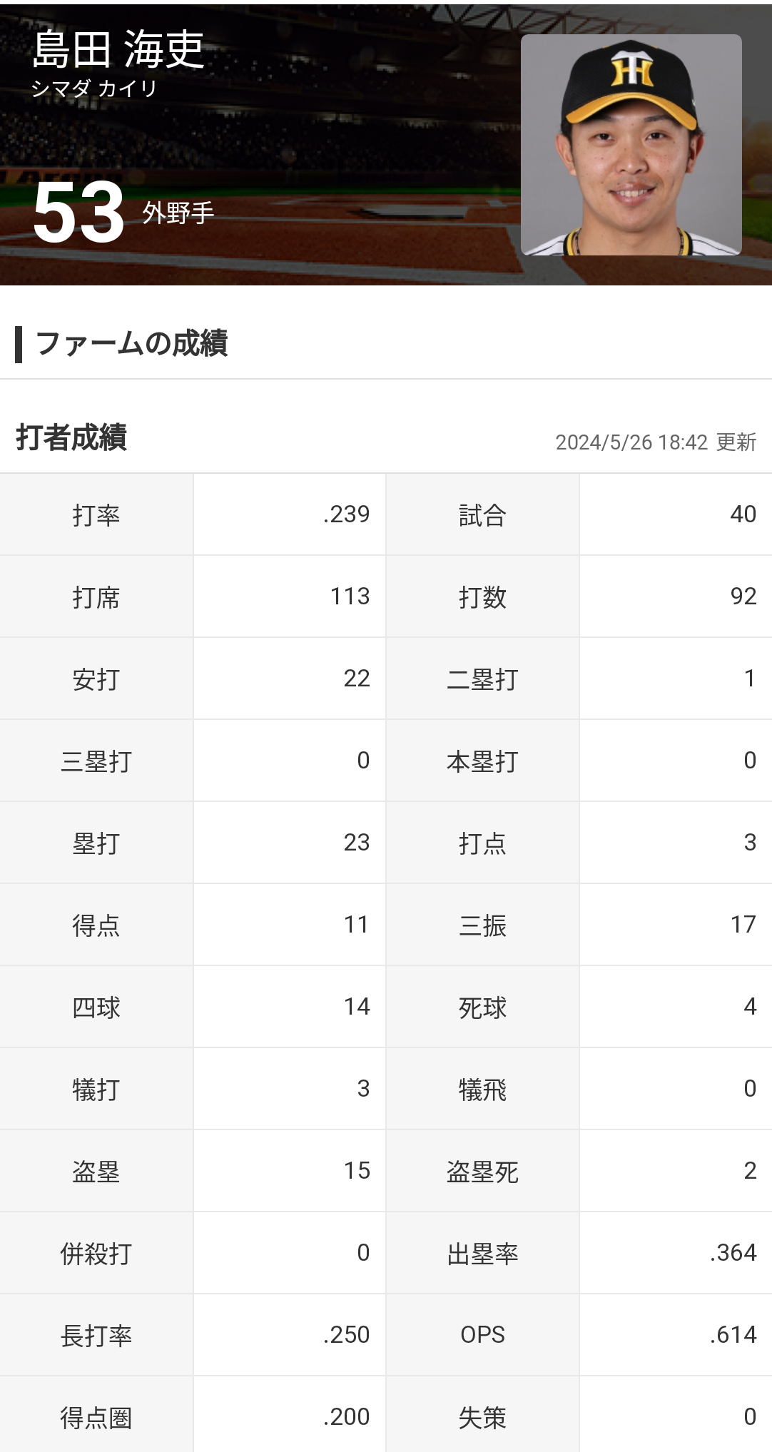 ぶっちゃけ島田は代走枠で打席立たんと思うから別にええけど