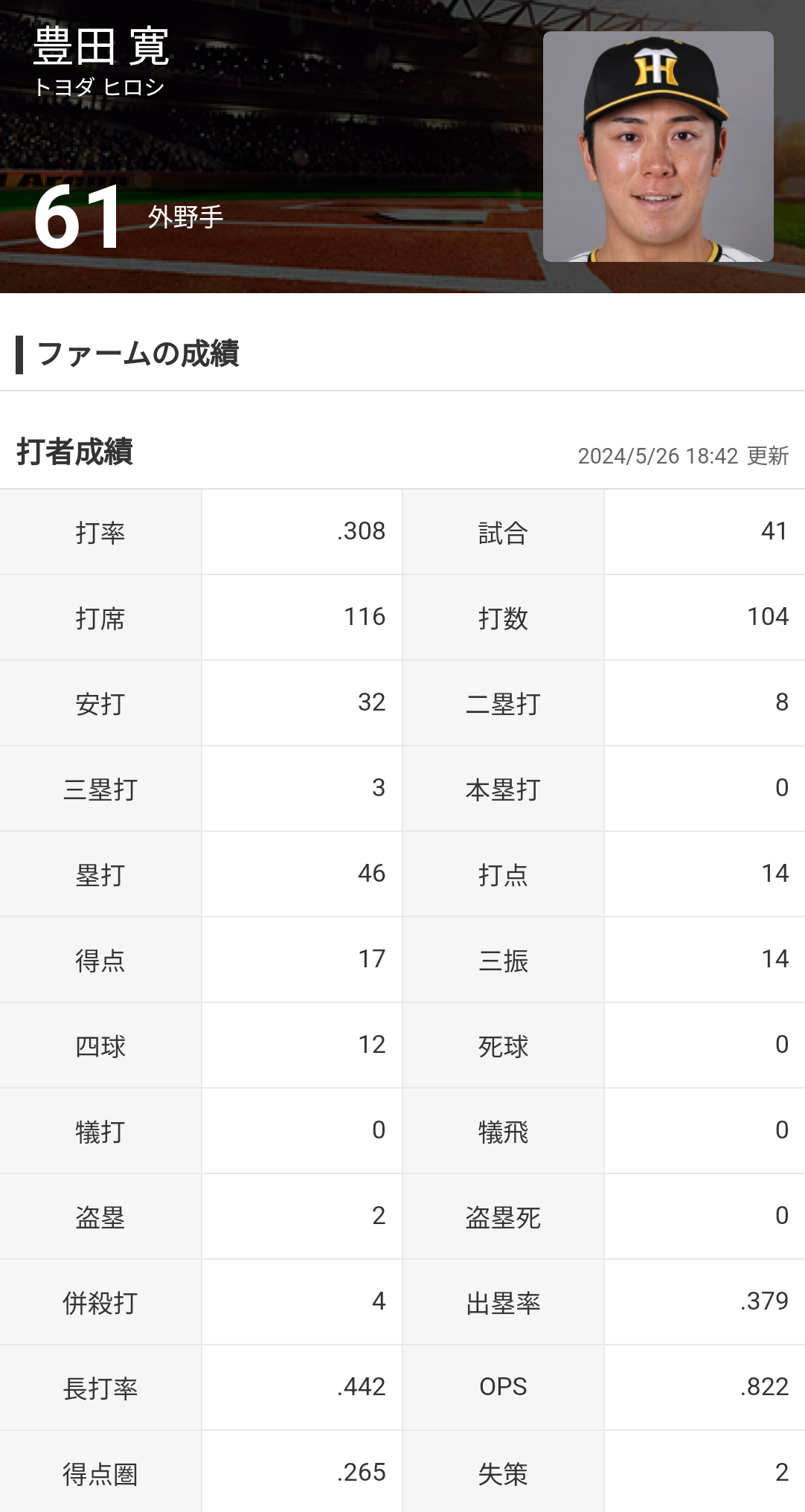 豊田とか小野寺より全然打ってるのに不憫やわ