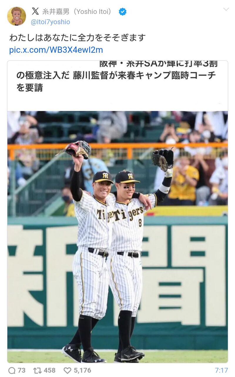 赤星はともかく糸井がどんな指導するんか気になって夜しか寝られへんわ