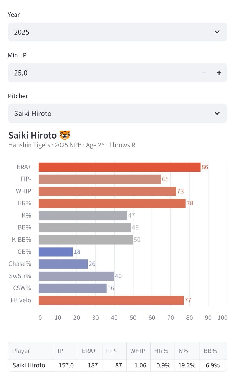 今年の才木は150くらいあるし防御率も1点台、8月以降ボール変わっても抑えてたので防御率3点台後半170イニングくらいはやれるよ