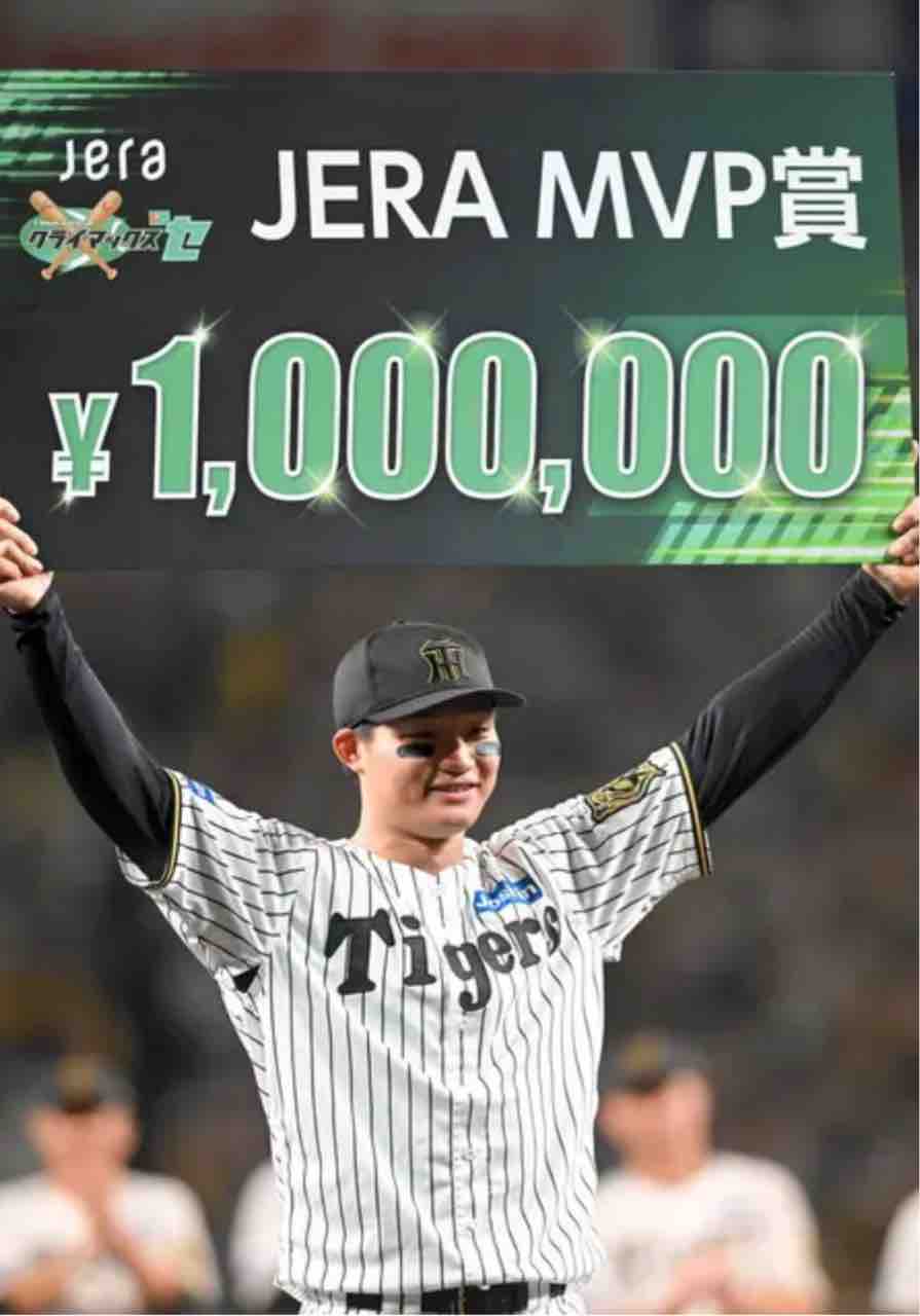 阪神・森下翔太外野手(25)が「2025 JERA クライマックスシリーズ セ」の最優秀選手賞(MVP)に輝いた。9打数6安打、打率・667、1本塁打、3打点と圧巻の成績を残しての獲得。「自分だけの力で取ったわけではない」と前置きした上で「やってきたものに改めて自信を持てたし、短期決戦という、より結果が見えてくるところで、MVPを取らせてもらってすごくうれしい」と喜んだ。