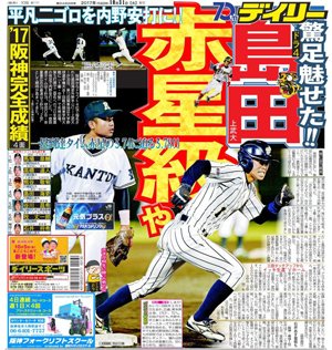 【朗報】阪神D4島田、内野安打を打っただけでデイリーの一面を飾る 2017年10月31日 カテゴリ:53 島田 海吏 mixiチェック 1: 風吹けば名無し 2017/10/31(火) 16:08:49.26 ID:GYFyM0m7d 他のスポーツ紙も一面の模様 【【朗報】阪神D4島田、内野安打を打っただけでデイリーの一面を飾る】の続きを読む
