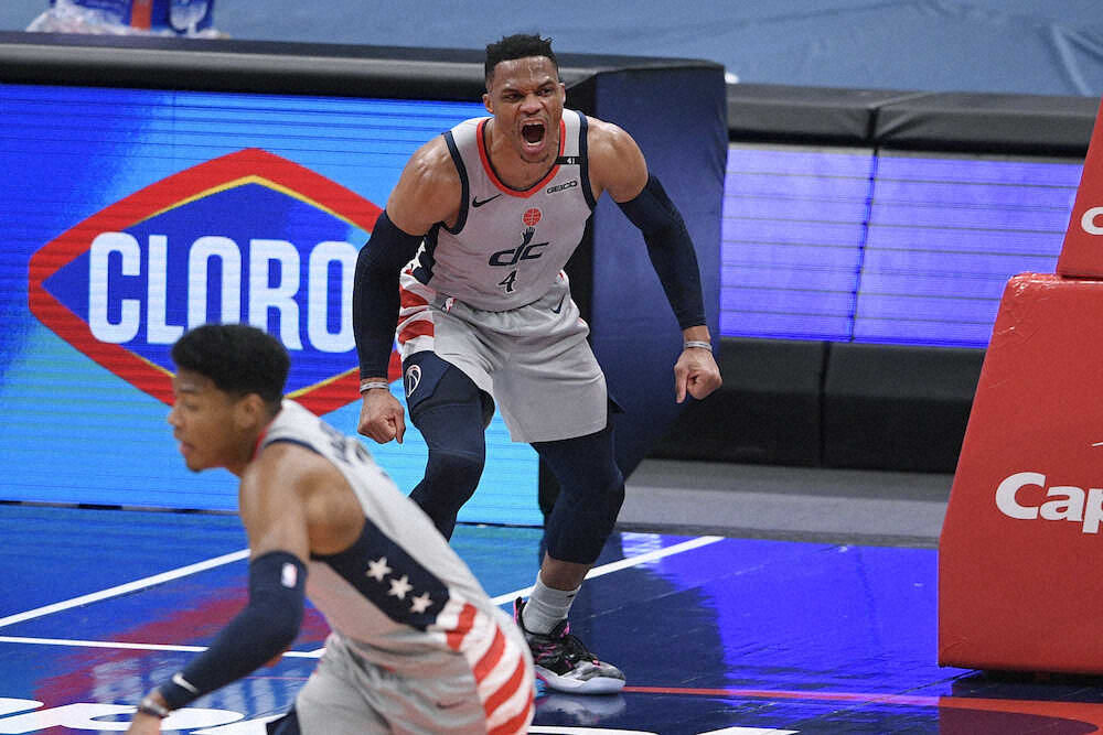 ウィザーズは第1Q途中で8点を追う展開となったがその後はリズムを取り戻し、第3Qは44―29。得点部門でリーグ1位(32・8)のブラドリー・ビール(27)が34得点をマークしてチームをけん引し、ラッセル・ウエストブルック(32)は19得点、14リバウンド、12アシストで2試合連続、今季10回目のトリプルダブルを達成した。